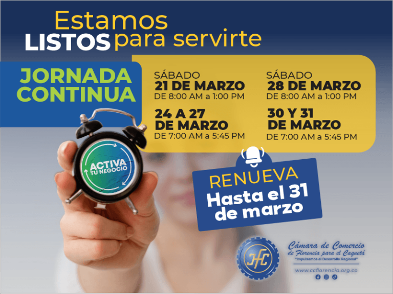 NUEVO HORARIO DE ATENCION EN CAMARA DE COMERCIO DE FLORENCIA